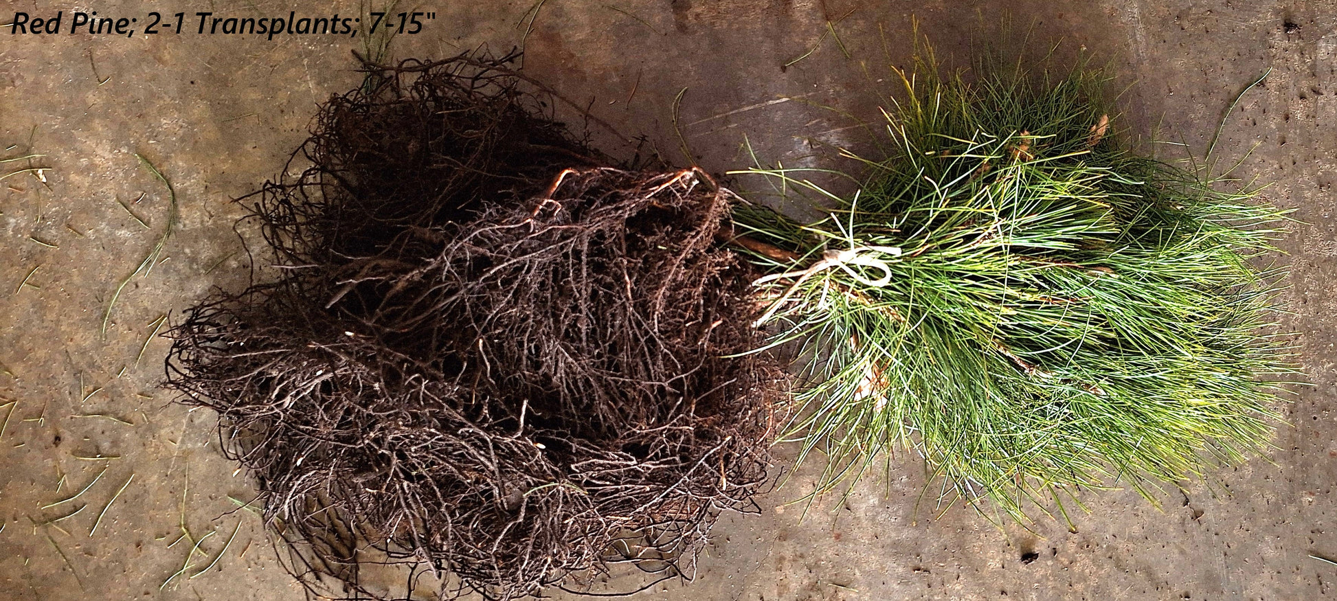 Additional Information: Also called Norway Pine. Conical, straight-trunked with an oval to rounded crown. Tree's bark is red-tinged from crown to base. Sharply-pointed needles grouped in pairs are 4-6" long. Attracts songbirds, upland game birds and mammals. A widespread root system holds fast against winds. Can live for centuries. Can thrive in poor soils. Good also for upland sites.